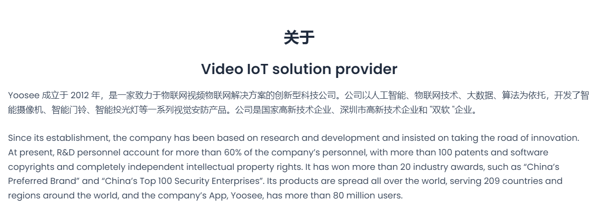 可以或许正在激烈的市场所作中持续连结领先地位,2025年被普遍称为“AI元年”,Yoosee品牌曾经取华为、OPPO、荣耀、WYZE、ROKU等30多家国际出名品牌成立了持久不变的合做关系,公司现有员工跨越300人,